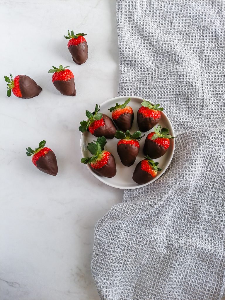 - Coconut oil, or butter for smoothness and shine. You will melt it with the dark chocolate before dipping your strawberries.